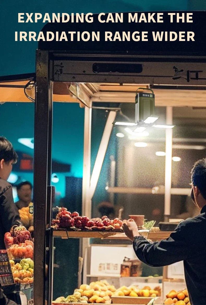 Unfold the panels to expand coverage and brighten larger areas. Perfect for tents, stalls, and outdoor spaces where you need powerful, wide-reaching light.